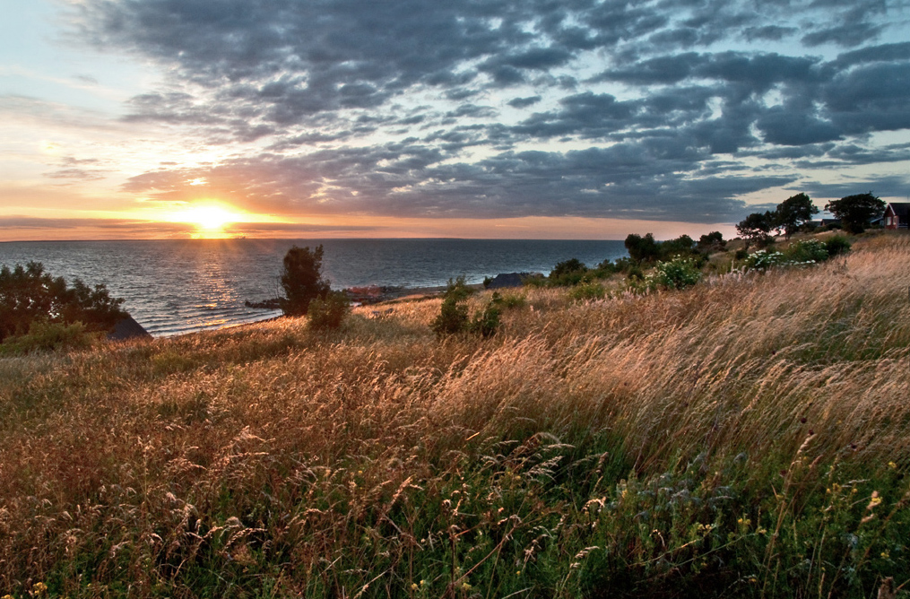 Kveldssol er vakkert og med en kraftig beskjæring nede og gradert gråfilter på objektivet, så hadde man fått bedre dynamikk i bildet og en mer dramatisk himmel. Dette ble dessverre litt mye strå og litt lite interssant.